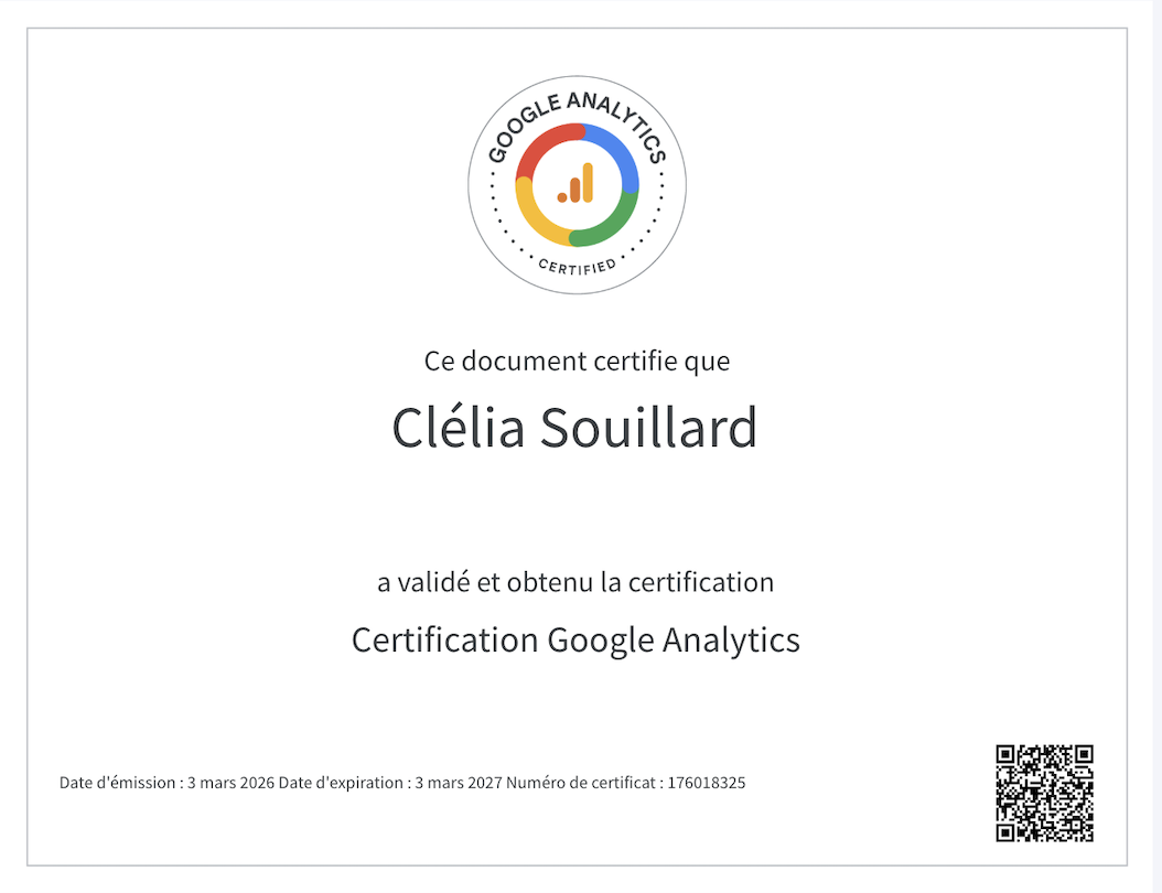 5 ans et 9 mois d'expérience dans le pilotage de stratégies digitales, du stage à la gestion de 80 points de vente en agence.